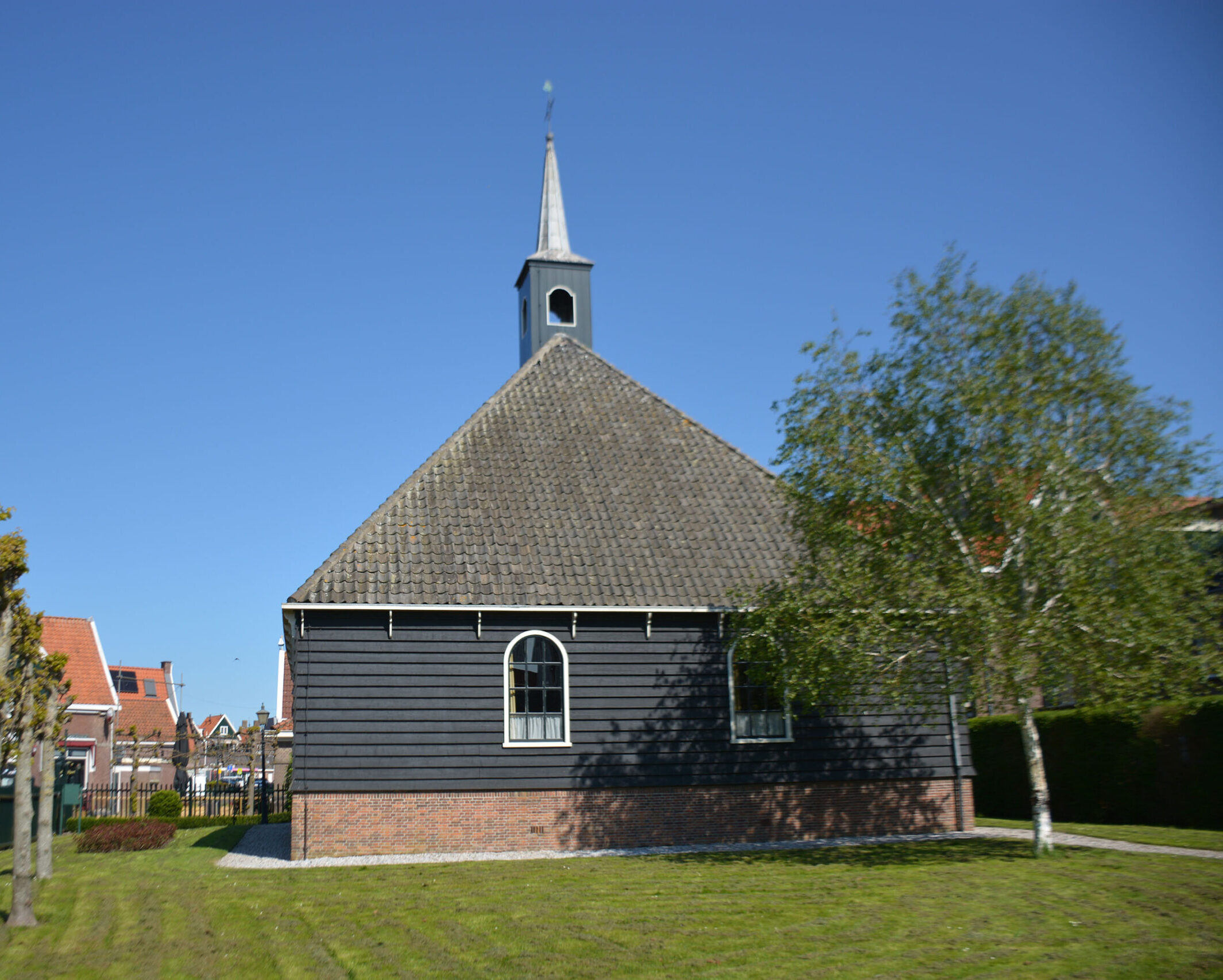 Één van de twee nog overgebleven stolphoevekerken in Noord-Holland bevindt zich in het pittoreske Volendam. Dit unieke religieuze erfgoed, dat tot voor kort nog in gebruik was als protestantse kerk in een katholiek dorp, heeft een rijke geschiedenis die teruggaat tot de bouw in 1658. De gemeente Volendam maakte gebruik van deze bijzondere kerk, die door molenbouwer Adriaan Nieng uit Hoorn werd ontworpen in de kenmerkende stijl van een stolpboerderij. Het spits torentje met luidklok op het piramidedak diende vroeger als baken voor de naar huis kerende vissers, met een licht dat in de nacht brandde.