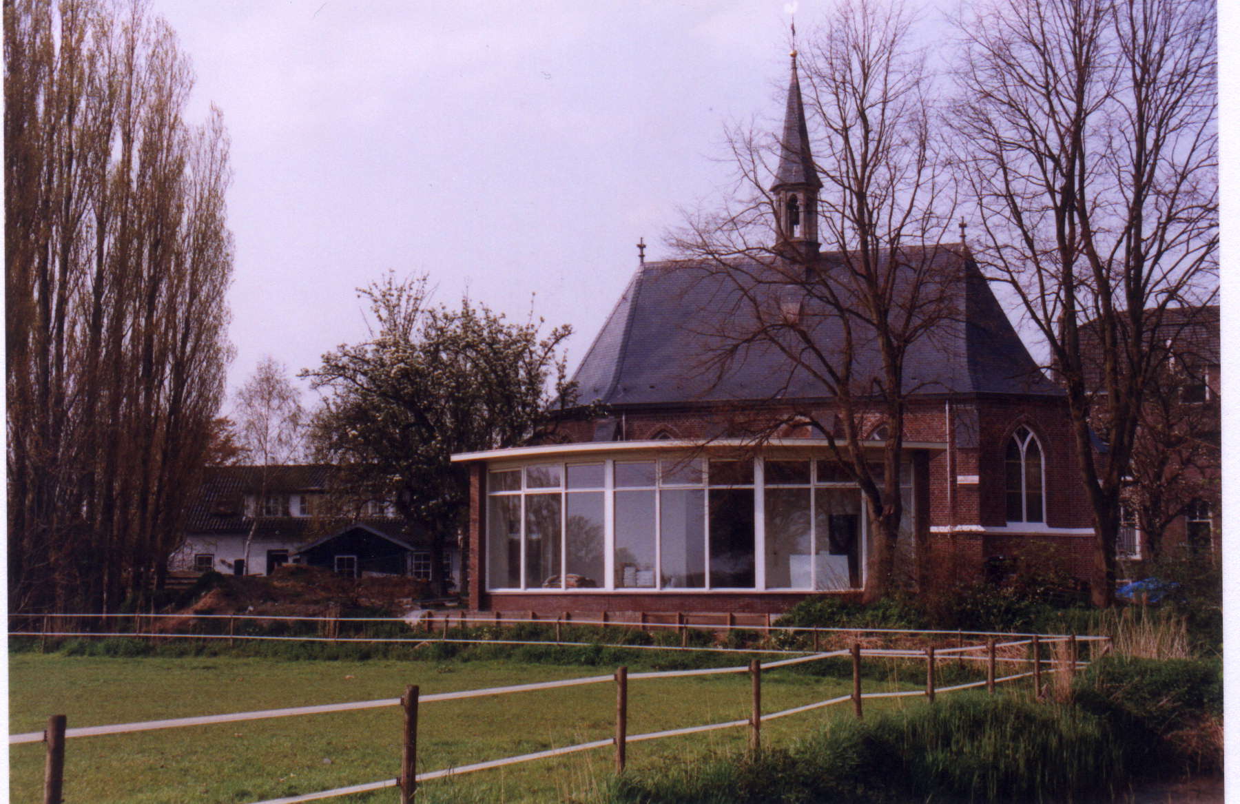 Naast de centrale ruimte bevat de uitbreiding ook praktische voorzieningen zoals een keuken, bar en toiletgroep, waarmee het comfort en de gebruiksmogelijkheden aanzienlijk zijn vergroot. Het ontwerp is zorgvuldig afgestemd op de schaal, stijl en sfeer van het oorspronkelijke kerkje, zodat het geheel een harmonieuze eenheid vormt tussen oud en nieuw.