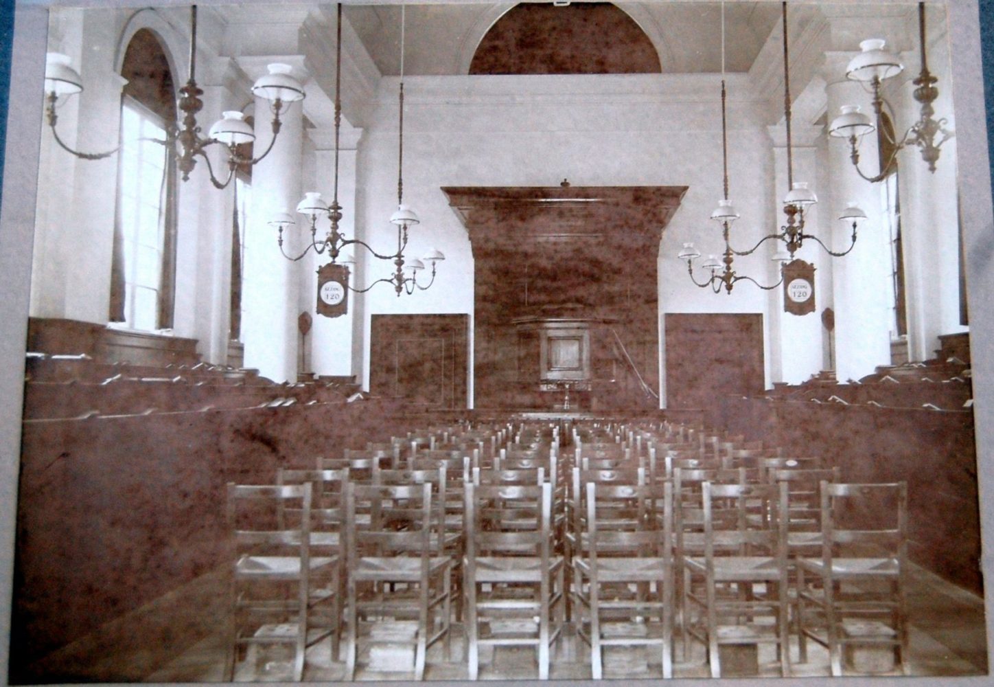 Links een historische afbeelding van de Vermaning, ten opzichte van de Wormerveerse Vermaning in haar huidige interieur.