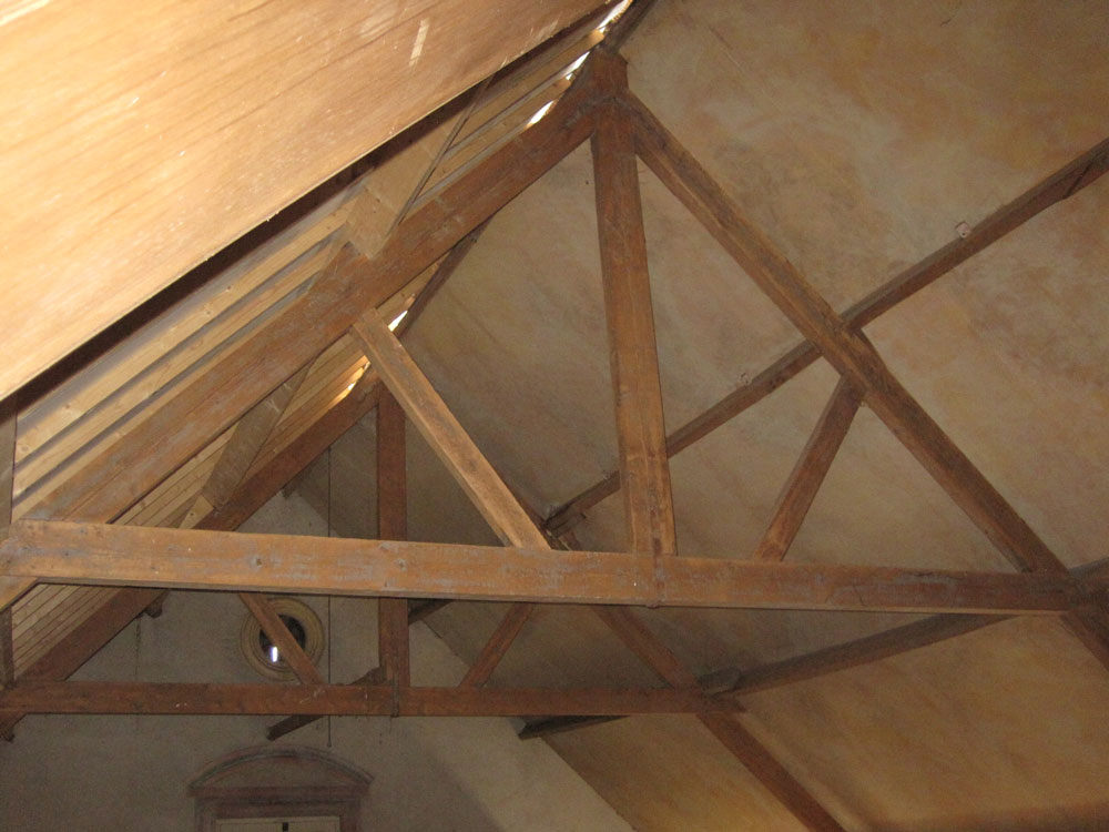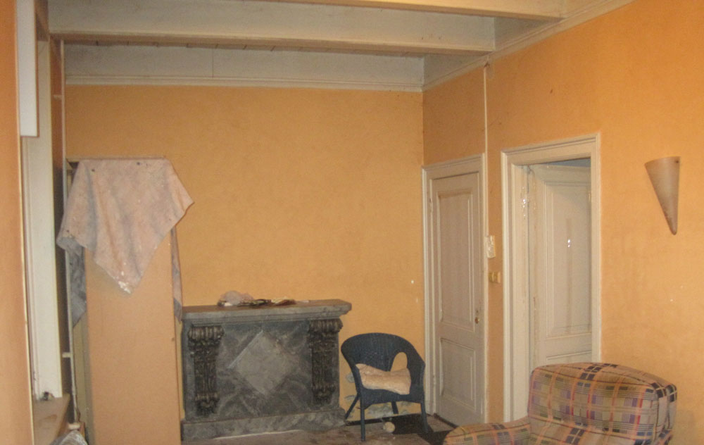 Hieronder de bovenste verdieping van het achterhuis van de boerderij. Voor de renovatie links, en rechts het ontwerp voor de renovatie.