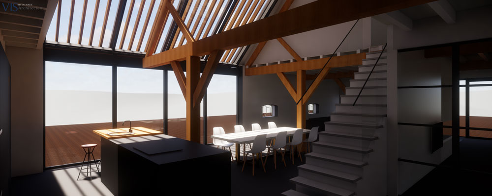 Voor een monumentale langhuisboerderij in Vleuten stelde VIS Architecten een restauratieplan op en ontwierp twee duurzame woningen, met behoud van historische structuren en karakteristieke details.