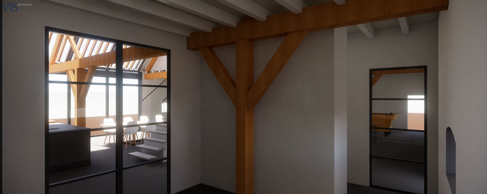 In 2018 kreeg VIS Architecten van Dutch Housing Company en de particuliere koper van de boerderij de opdracht om een restauratieplan op te stellen en een ontwerp te maken voor de herbestemming van een karakteristieke langhuisboerderij uit 1889 in Vleuten. Het voormalige boerenerf werd herontwikkeld tot een ensemble van acht woningen, waarbij de monumentale boerderij werd omgevormd tot twee zelfstandige woningen.