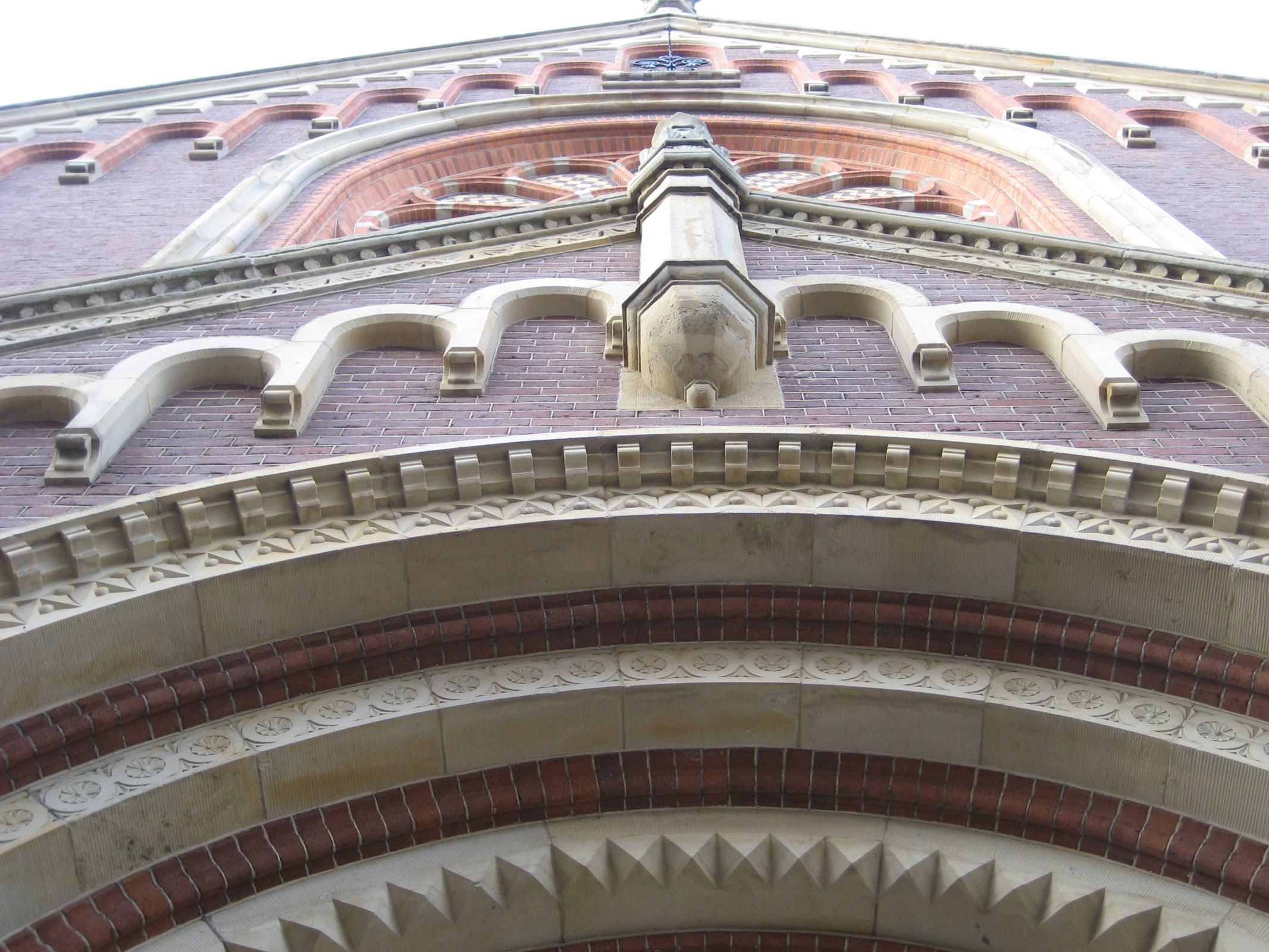 De Doopsgezinde kerk aan de Paleisstraat in Den Haag is een uniek kerkgebouw met een karakteristieke neoromaanse voorgevel. Oorspronkelijk in 1885-1886 ontworpen door architect K. Stoffels, vormt dit gebouw een zeldzaam voorbeeld van de neoromaanse bouwstijl in Nederland. De kerk is rijk gedetailleerd met boogfriezen, pinakels, een roosvenster en natuurstenen zuilen met kapitelen bij de hoofdentree. Zoals veel doopsgezinde ‘vermaningen’ was ook deze kerk van oorsprong enigszins verborgen in het stadsbeeld – een weerslag van het feit dat doopsgezinden hun religie lange tijd slechts op de achtergrond mochten uitoefenen.