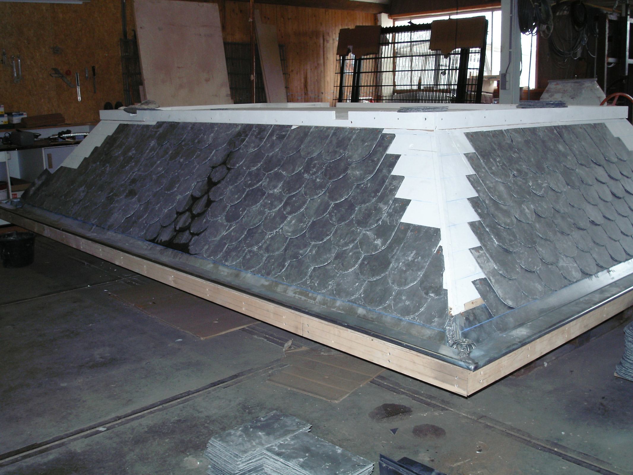 Het nieuwe baldakijn bestaat uit gegoten metalen kolommen die de constructie ondersteunen, voorzien van zinken spuwers in de vorm van drakenkoppen – een verwijzing naar het originele decoratieve programma. De overkapping is vervaardigd van hout en gedekt met ronde leien, zoals dat ook in het verleden het geval was. Met deze reconstructie is het grafmonument weer in zijn historische waardigheid hersteld, passend bij de cultuurhistorische waarde van het Museum Bisdom van Vliet en zijn tuinensemble.