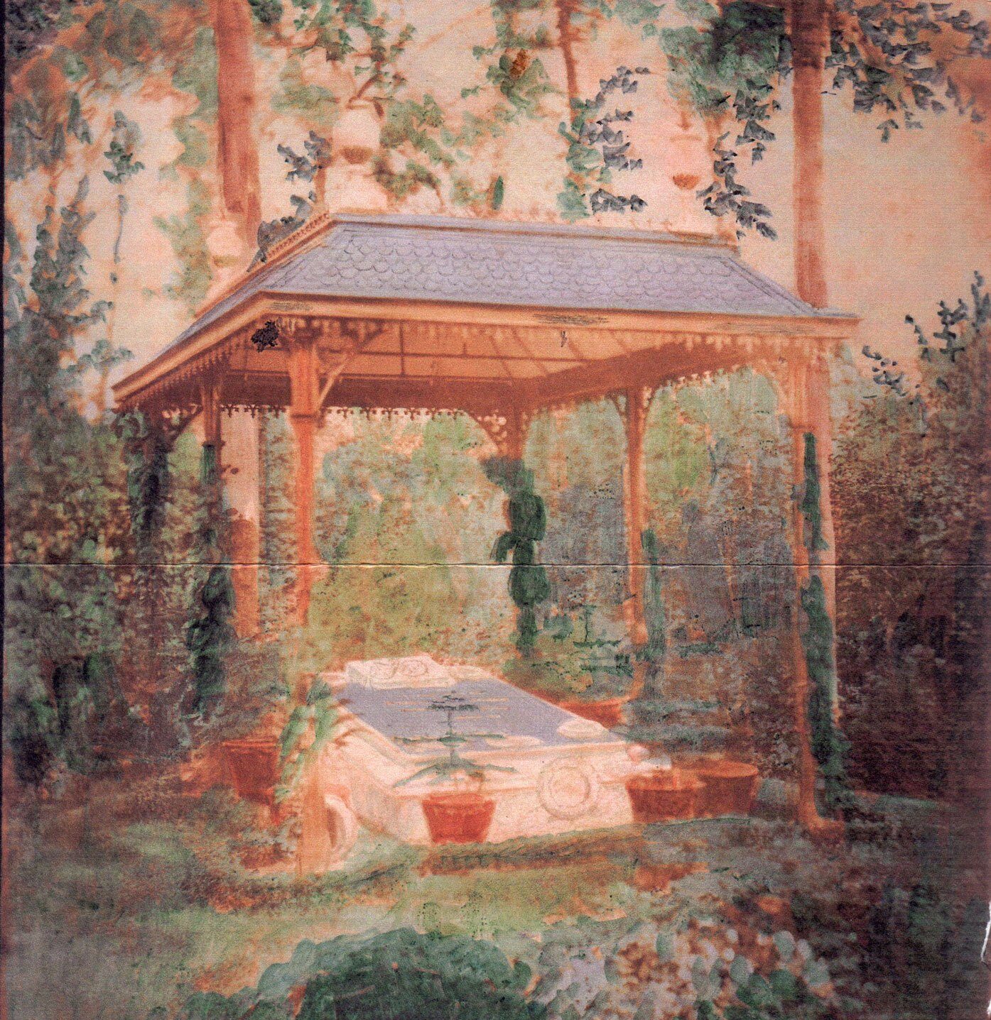 In de loop van de tijd is het grafmonument echter gewijzigd. Nadat de tuin in eigendom was overgedragen aan de Gemeente Haastrecht, is het originele baldakijn verwijderd, vermoedelijk vanwege bouwvalligheid. Het werd vervangen door een grof traliehek dat niet aansloot bij het oorspronkelijke karakter van het grafmonument. Vis Architecten werd gevraagd om op basis van historische bronnen een reconstructie van het oorspronkelijke ontwerp te realiseren.