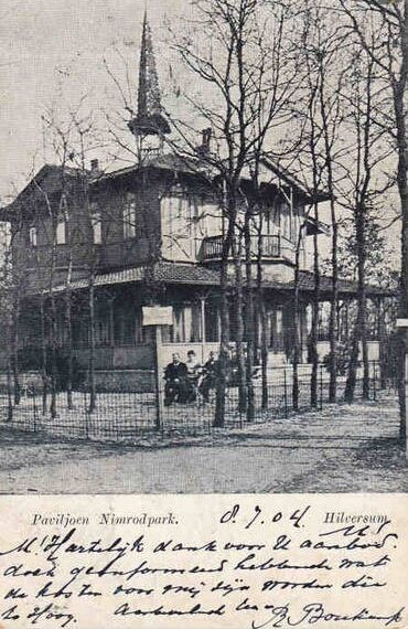 Hieronder het Paviljoen in het Nimrodpark in 1900, vergeleken met de huidige staat van het Paviljoen dat enkel nog de begane grond heeft.