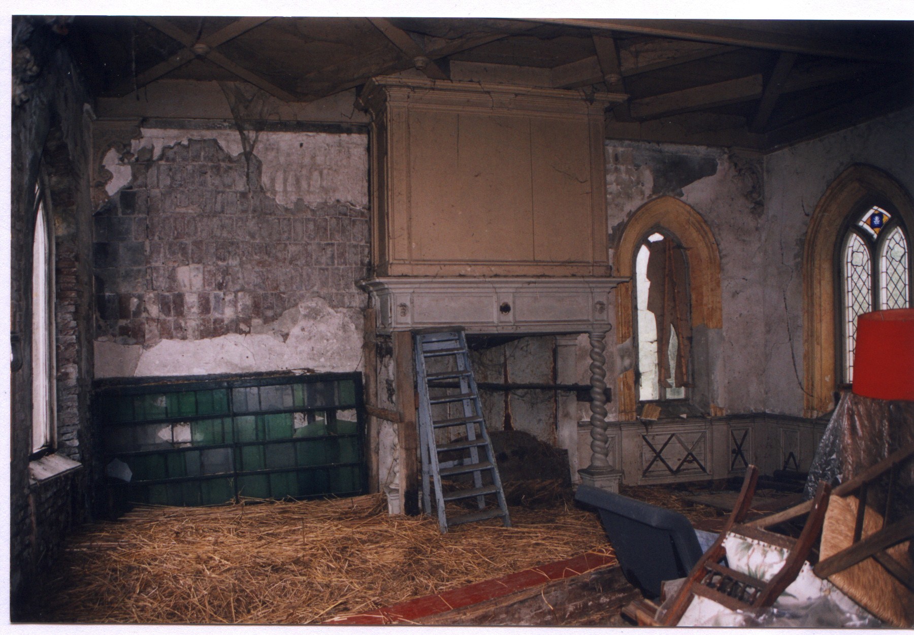 De open haard voor en na de restauratie in het Jachthuis Molenstijn.