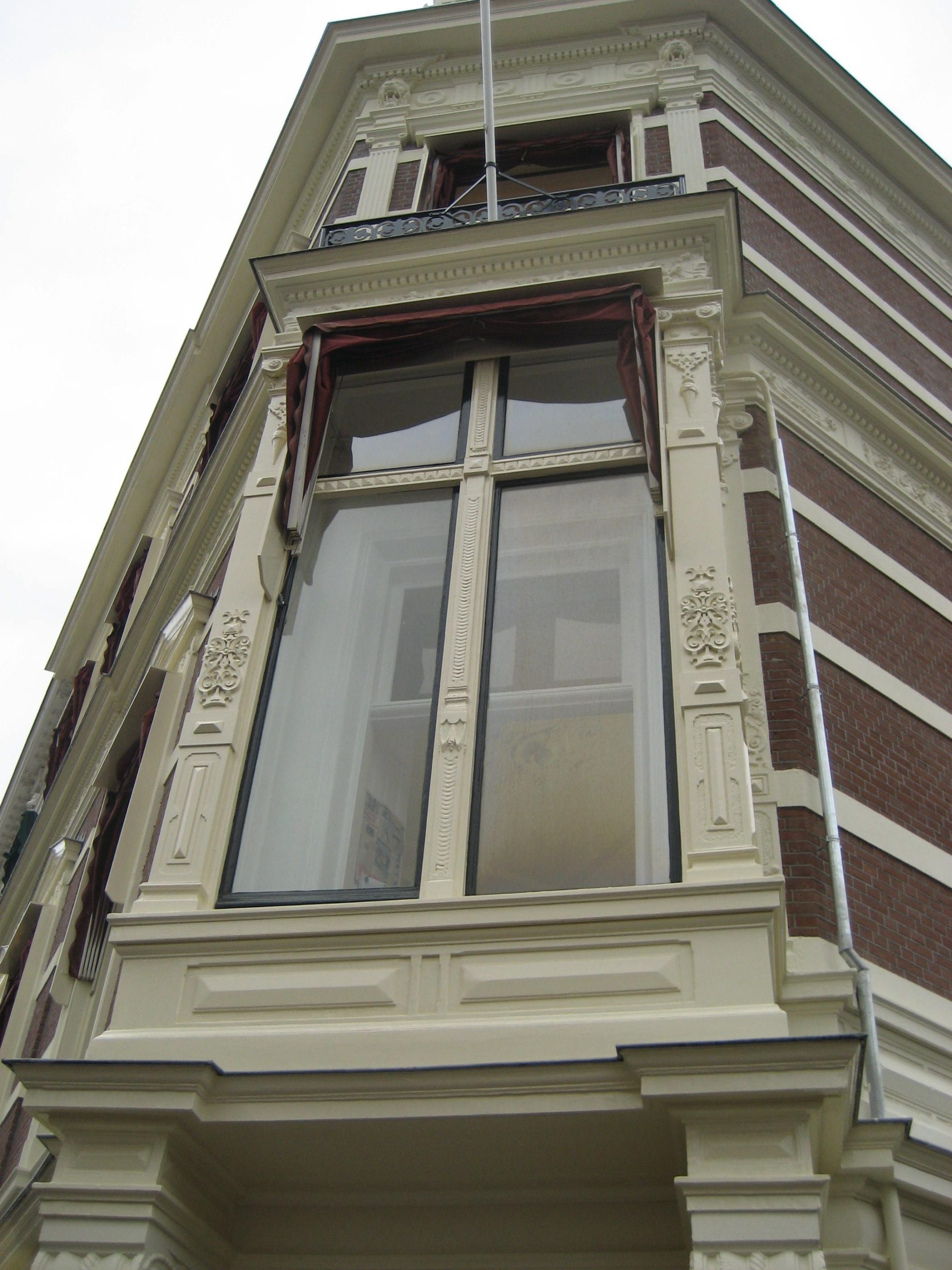Bij het monument aan de Javastraat in Den Haag begeleidde VIS Architecten het herstel van ernstig vervuilde gevels, waarbij verflagen werden verwijderd en ornamenten zorgvuldig gerestaureerd.